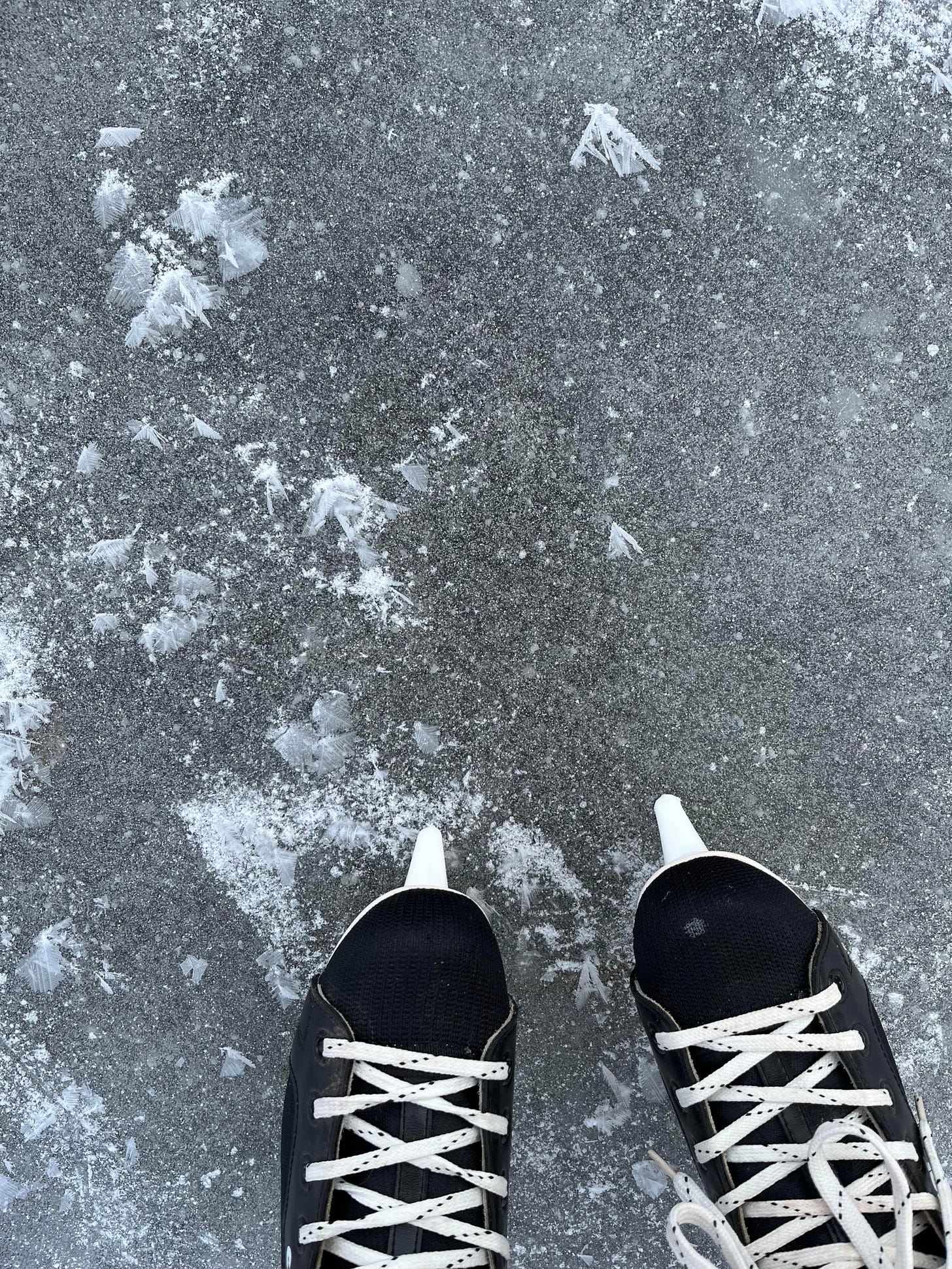 I’ve taken to skating the lake. It’s been a winter with minimal snow, so here in Minnesota the ground is brown instead of white. Normally I’d be celebrating the season with nordic skiing or snowshoeing, but that hasn’t been an option so far this winter season. This winter, it has been tempting to bemoan the lack of snow and stay inside, longing for spring. And that’s no way to spend one’s time. So this winter, I skate.